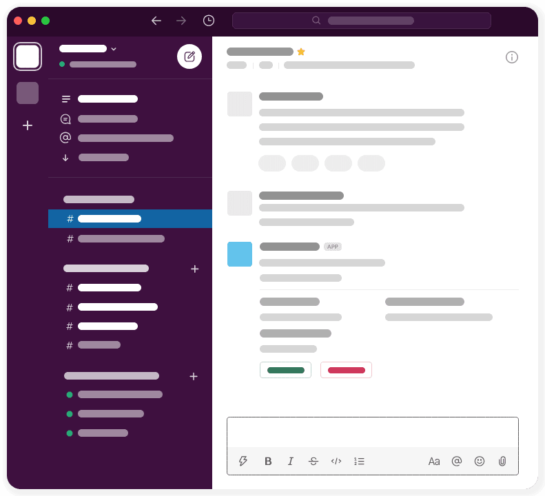 App-published messages are dynamic yet transient spaces. They allow users to complete workflows as Slack conversations.